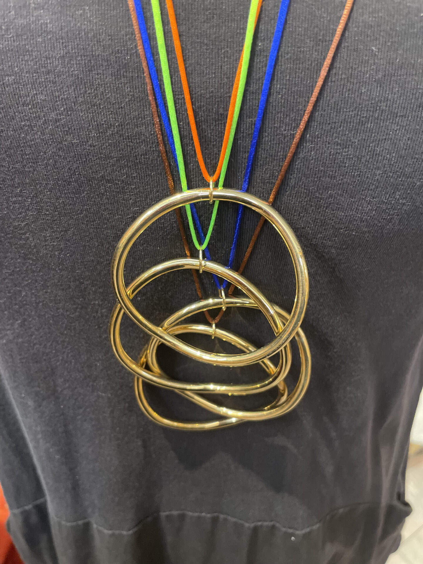 Suspendu par un fil soyeux en couleur (au choix) réglable.