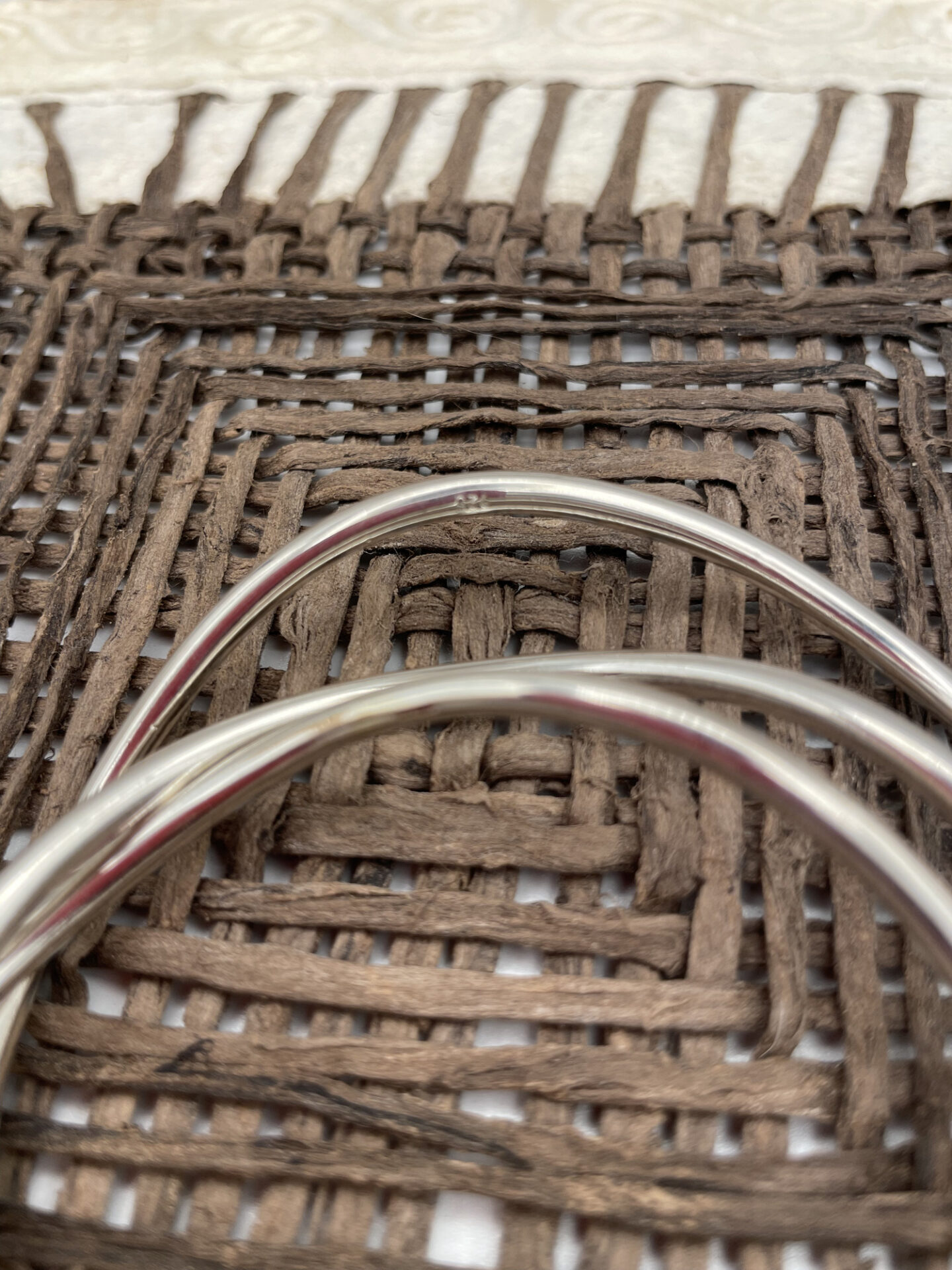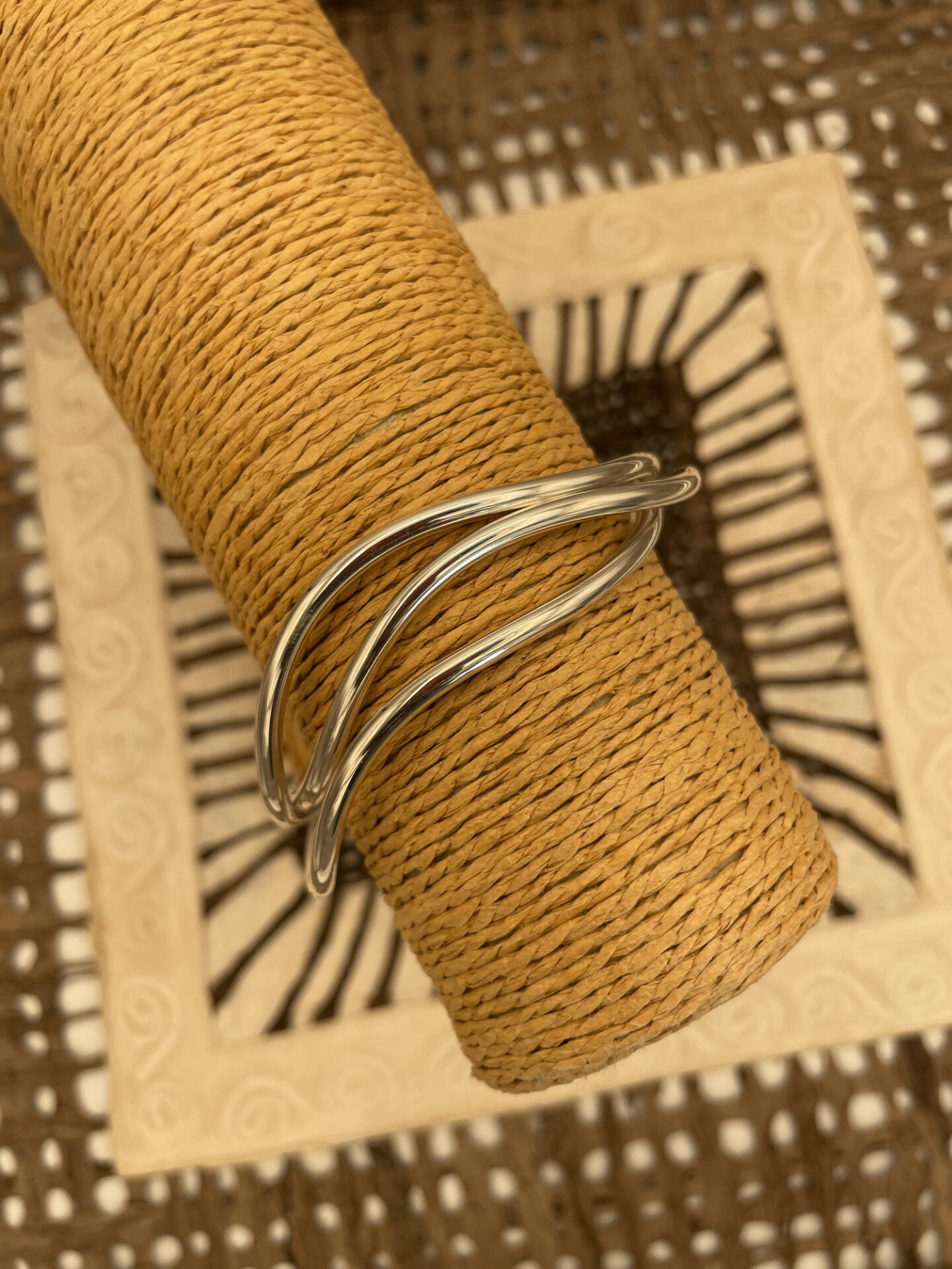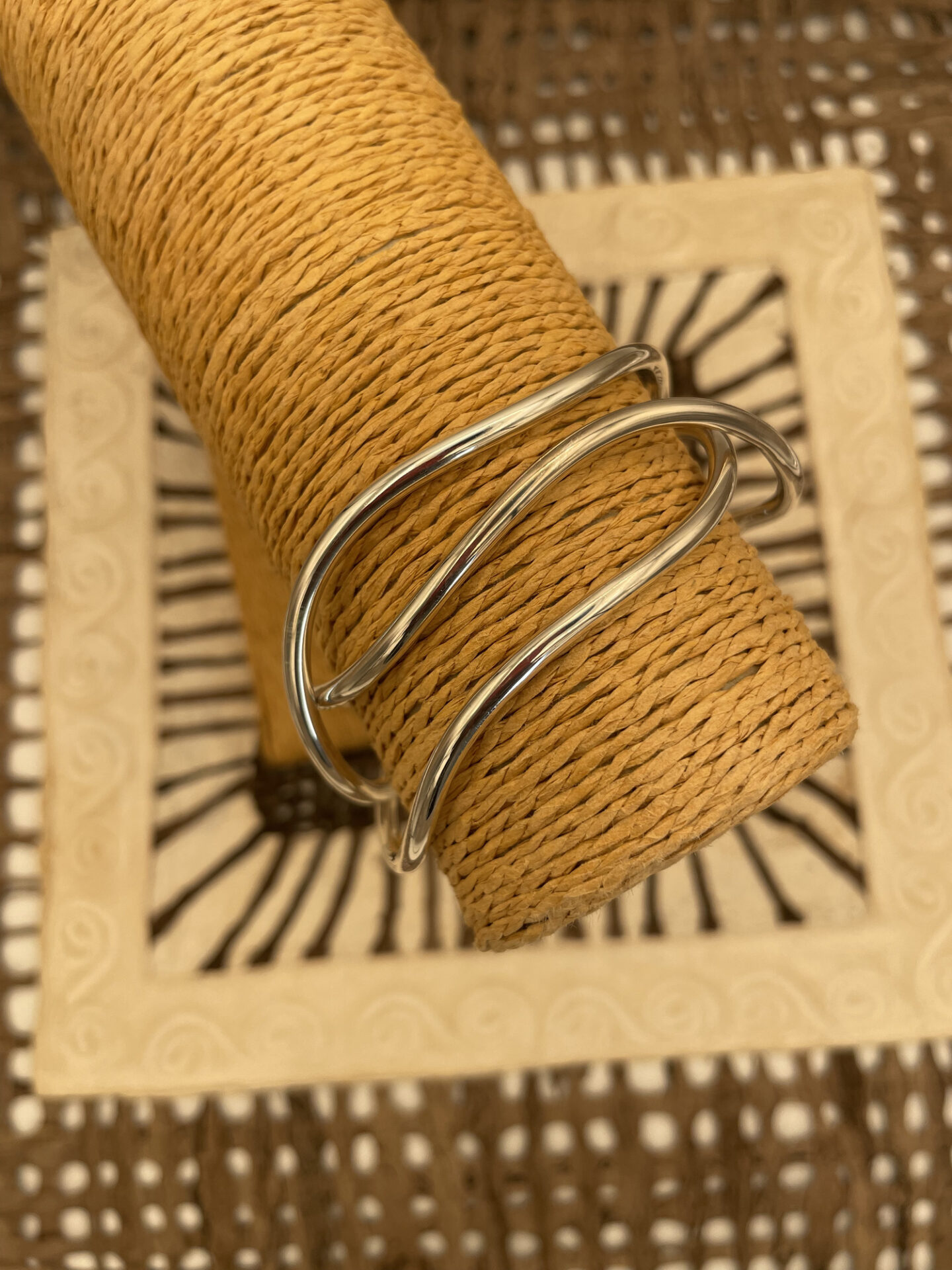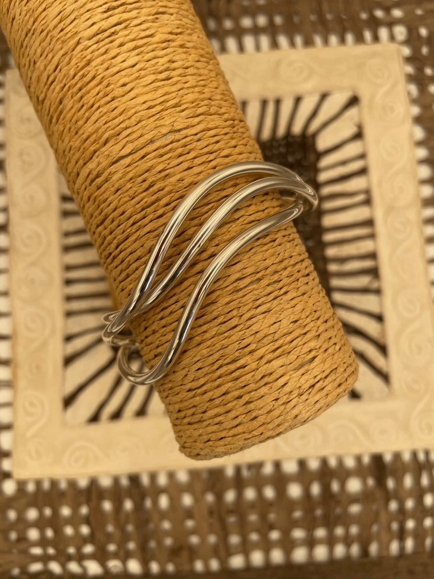 3 joncs entrelacés en argent incurvé en forme de vague conçu par mes soins et réalisé au Mexique.