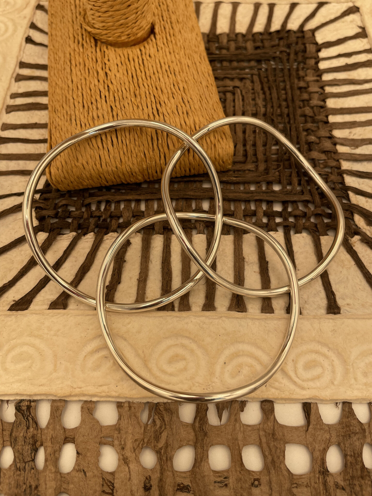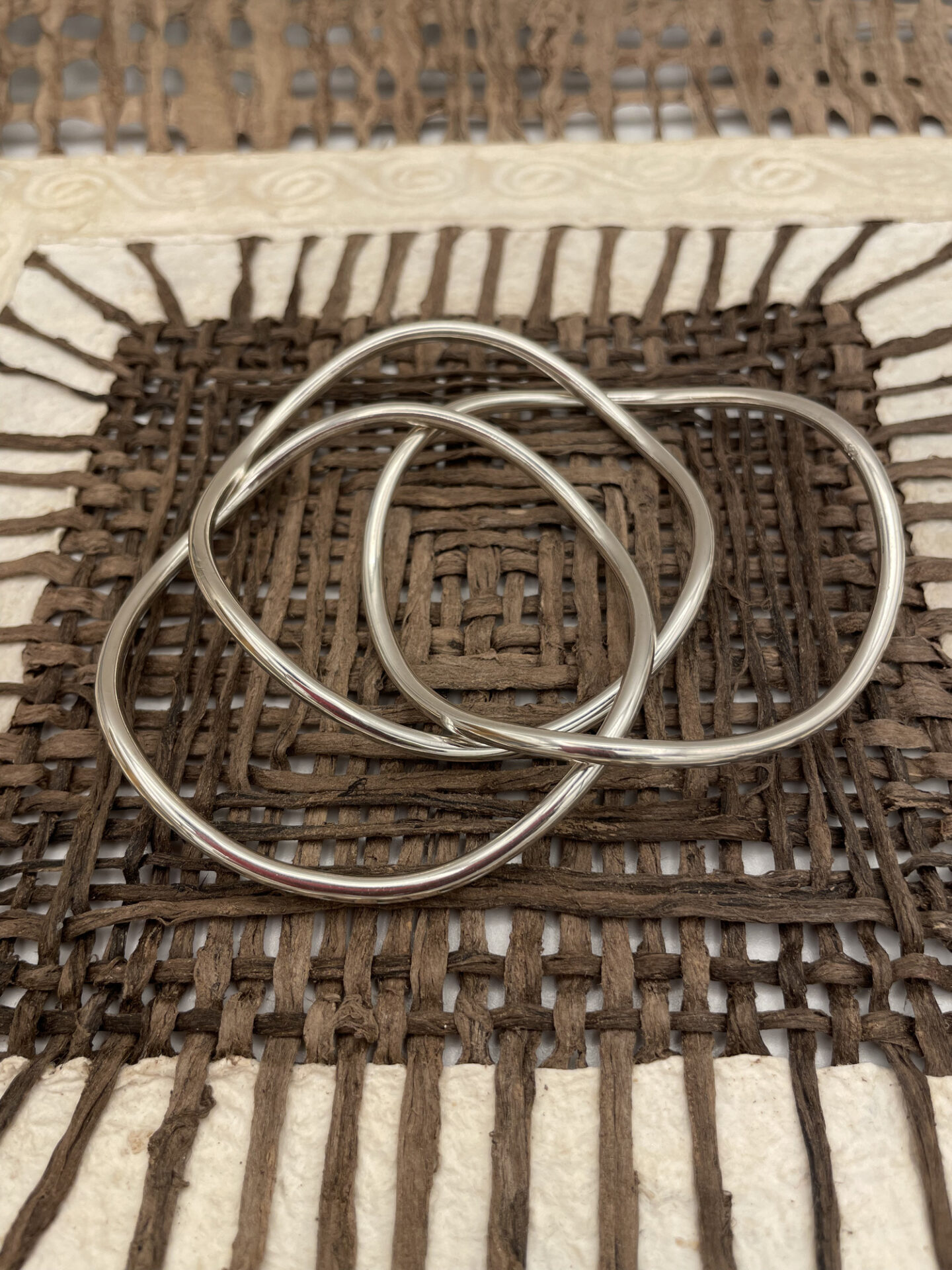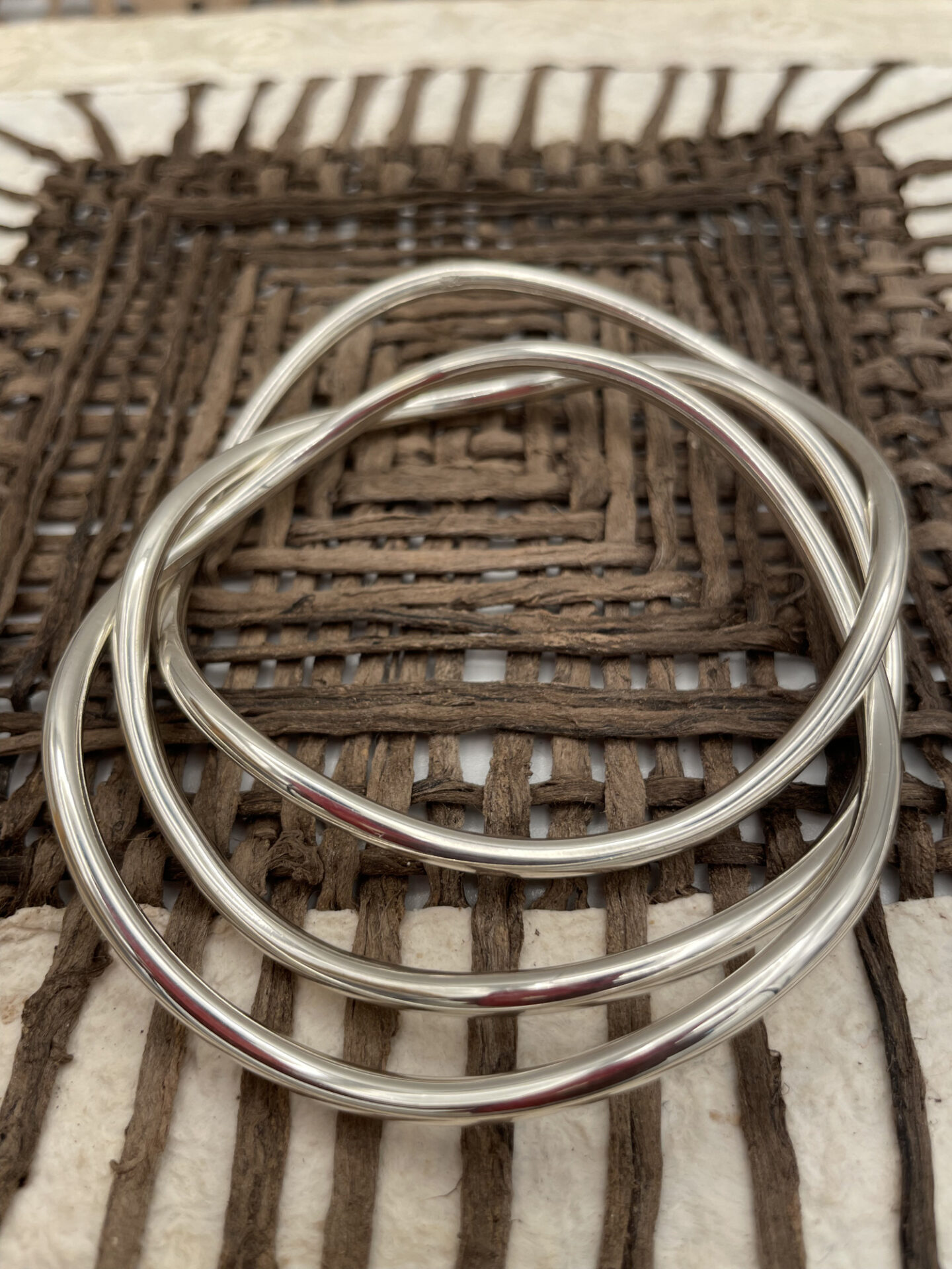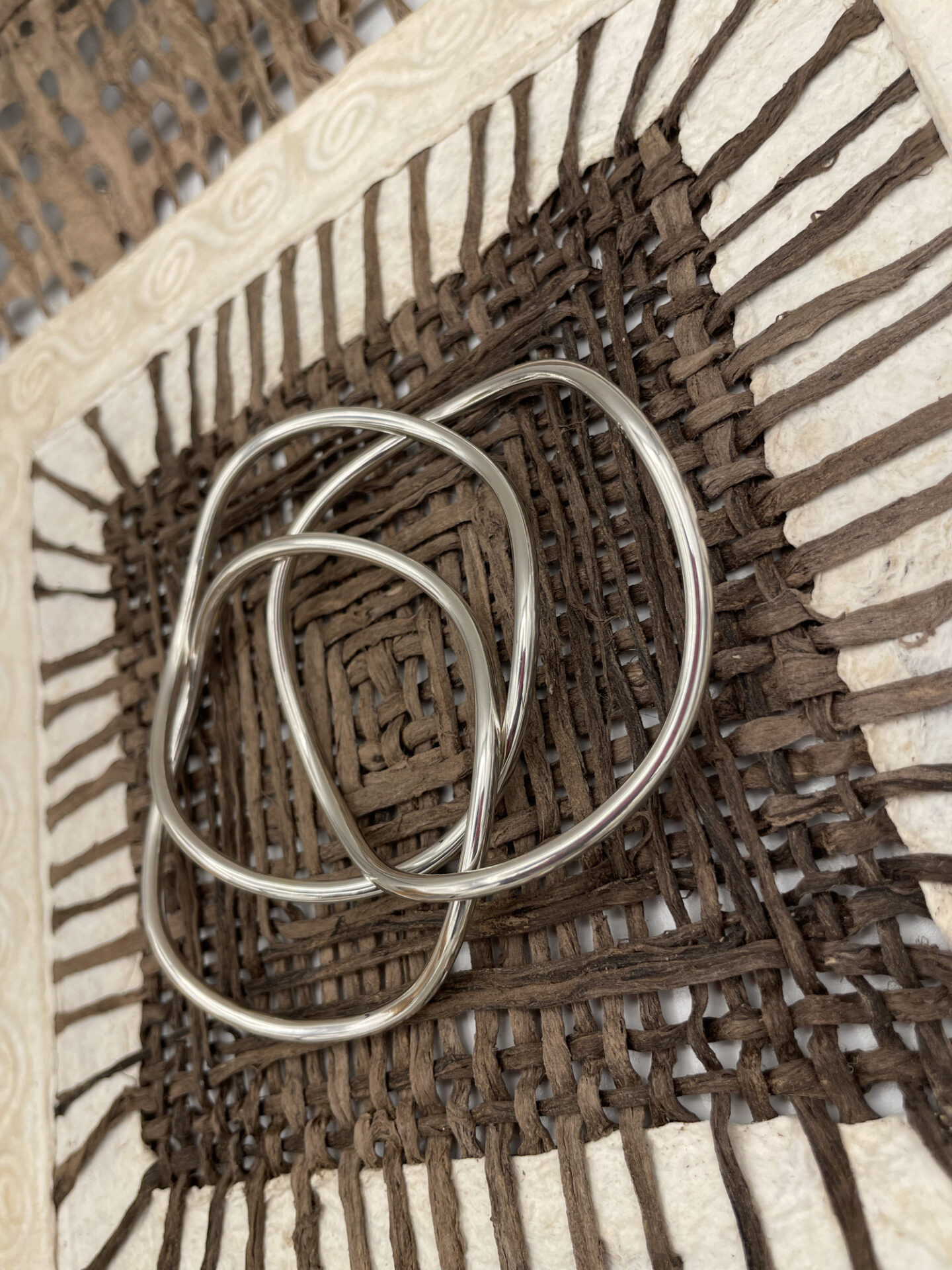 3 joncs entrelacés en argent incurvé en forme de vague conçu par mes soins et réalisé au Mexique.