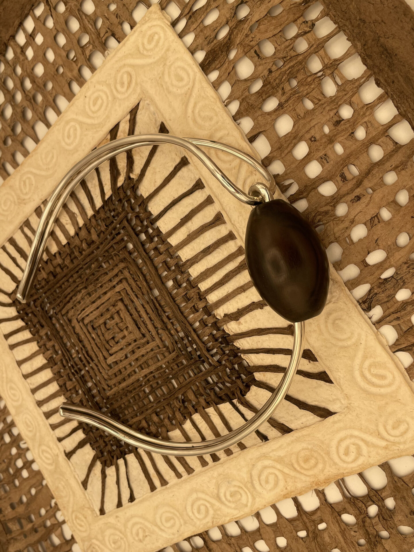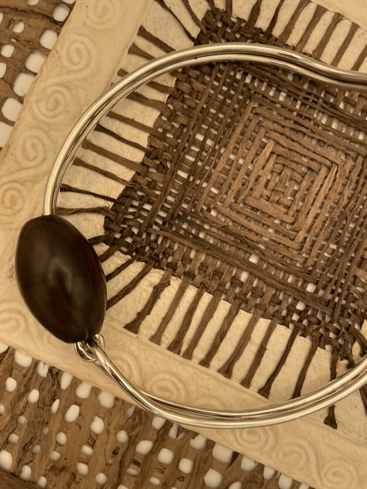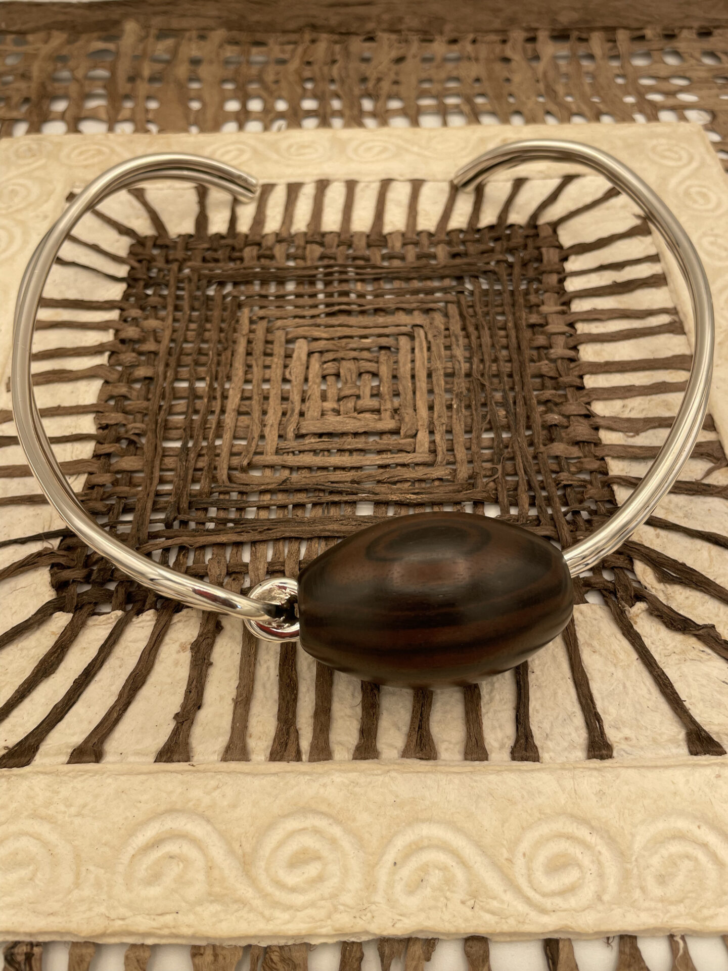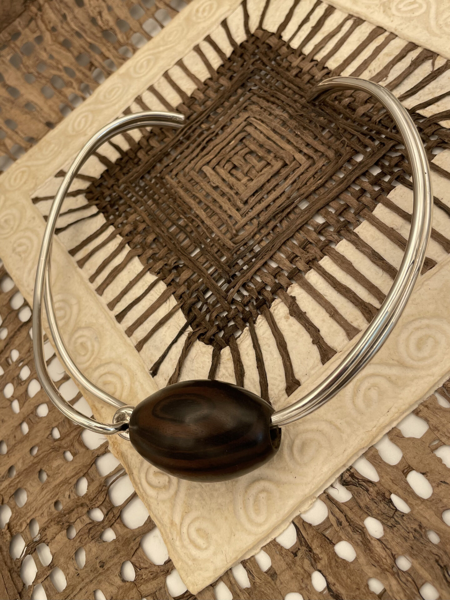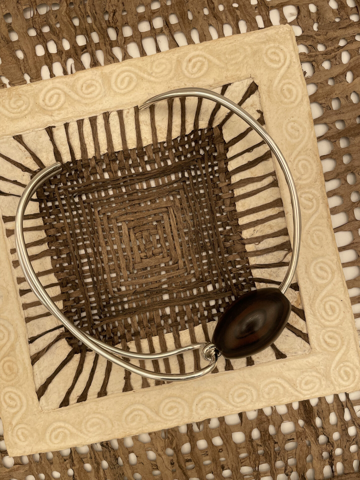 VERACRUZ : ce collier est notre première création à la rencontre des continents ; quand l’ébène du Bénin rencontre l’argent du Mexique, cela donne ce torque inédit.